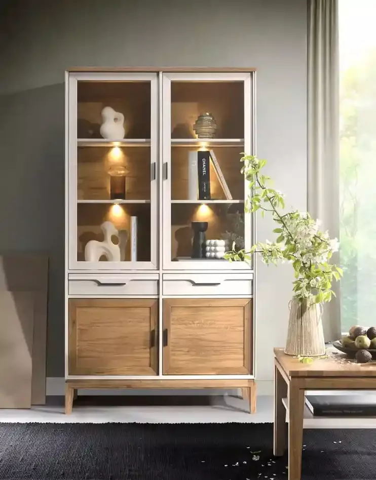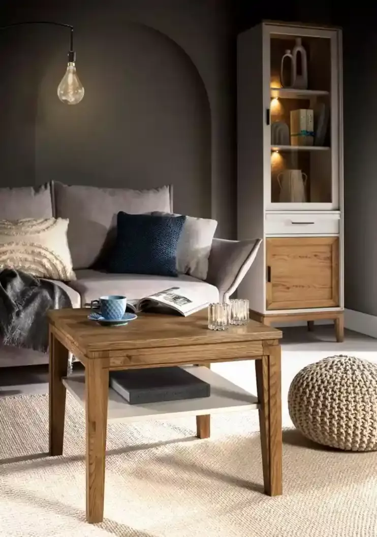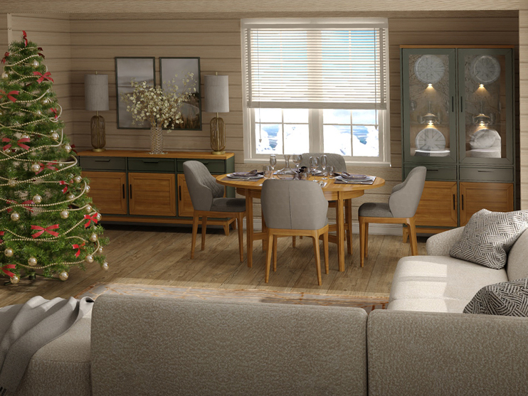 В стильную коллекцию мебели «Гранада» для гостиной входят однодверные и двухдверные тумбы, шкафы для посуды с остеклением и без остекления. Корпуса, фасады и полки изготавливаются из массива сосны, задние стенки и днища ящиков из ДВП. На выбор два цветовых сочетания: «белый воск/антик 24» или «серый 7016/антик 24».