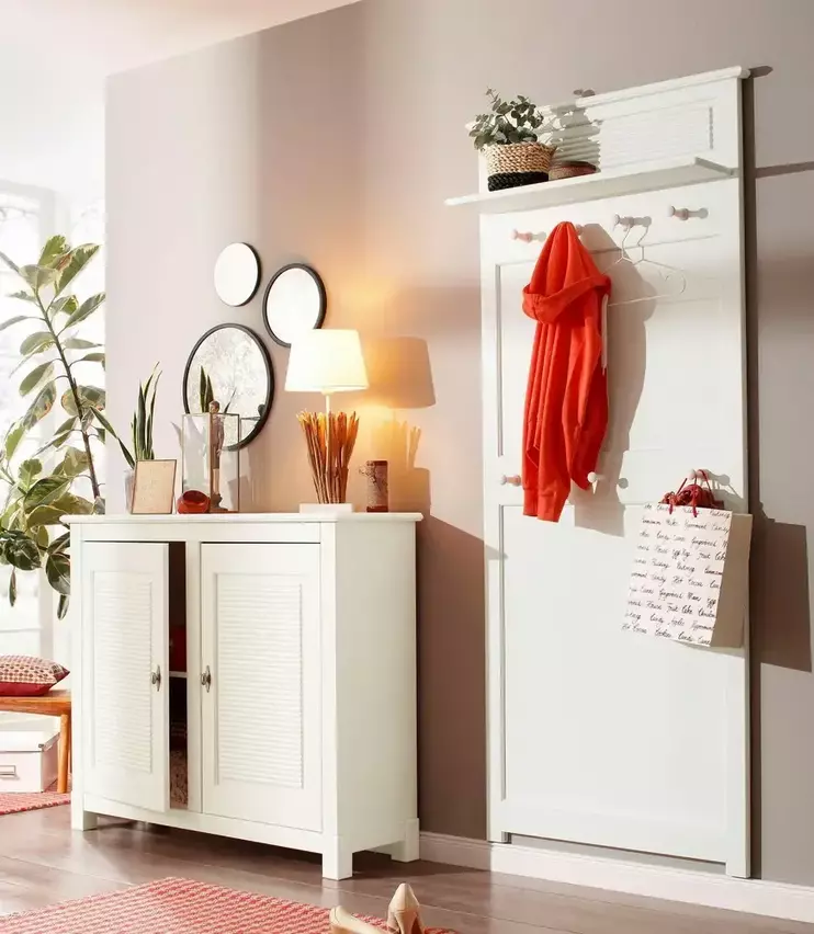 Изделия предлагаются в 3 вариантах отделки: «бейц/масло», «белый воск УКВ» и «колониал». На дверцах и ящиках устанавливают ручки с эффектом «состаренное серебро». Ящики устанавливают на направляющих неполного выдвижения, без доводчиков.