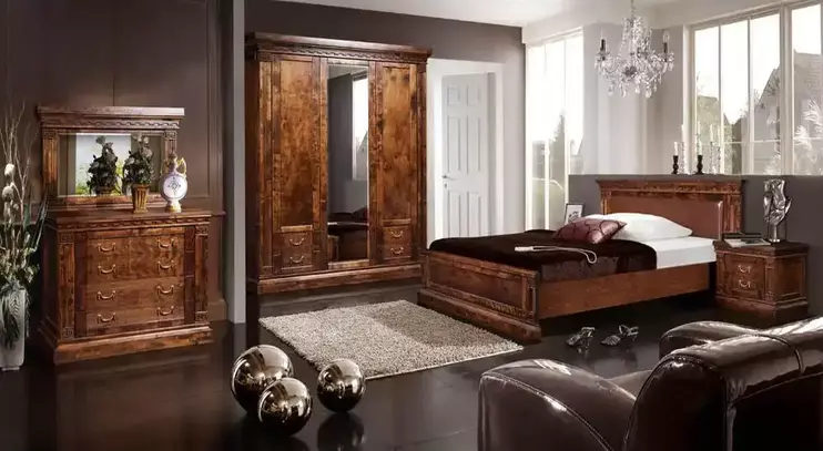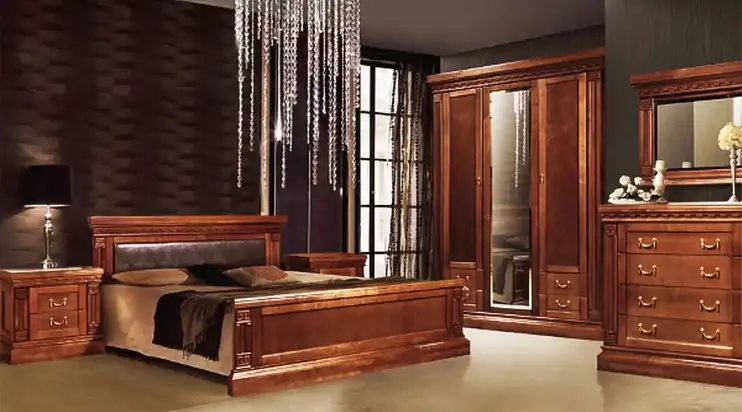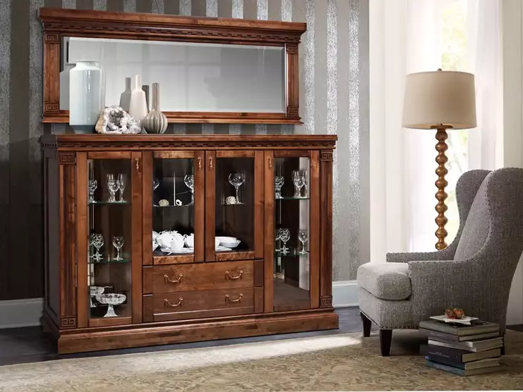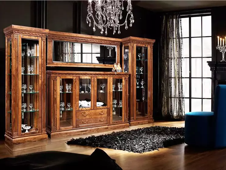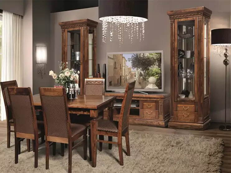Роскошная мебель из натурального дерева для гостиных комнат, спален и столовых. В коллекцию входят кровати, шкафы-витрины для посуды и шкафы для одежды, тумбы ТВ и прикроватные тумбы, обеденные столы и стулья.