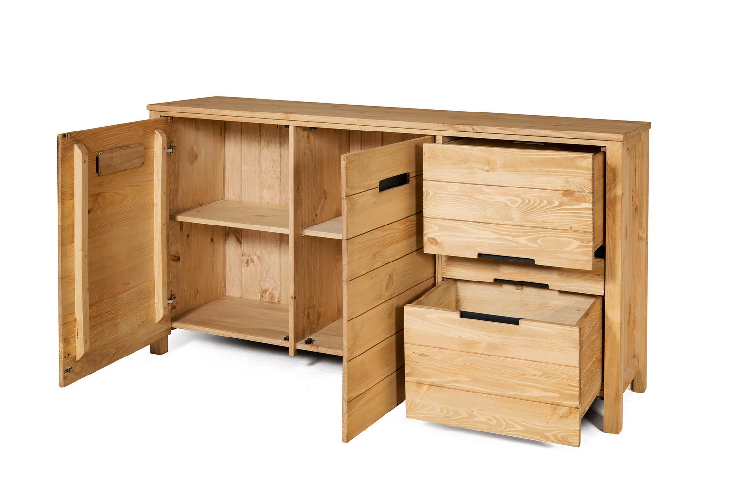 Корпус, ящик, полки и дверцы изготовлены из массива сосны.
