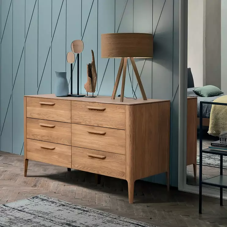 Для изготовления корпусов и фасадов используют высококачественный массив дуба. Задние стенки изделий и донья ящиков изготавливаются из фанеры в шпоне дуба. Ящики и дверцы закрываются мягко и бесшумно благодаря направляющим и петлям с доводчиками. На дверцах и ящиках удобные деревянные ручки. Еще один плюс – высокие ножки, поэтому можно делать уборку, не передвигая мебель.
