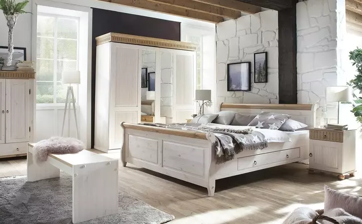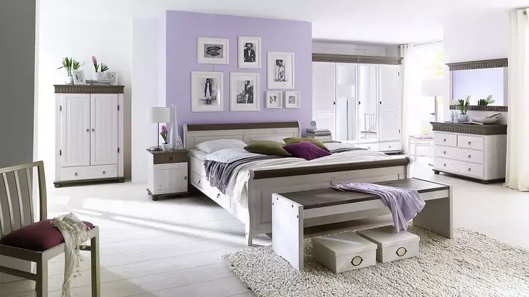 В коллекции есть односпальные и двуспальные кровати с ящиками и без ящиков, туалетные и письменные столы, прикроватные тумбы, бельевые шкафы с двумя, тремя и четырьмя створками, комоды с дверцами и ящиками.
