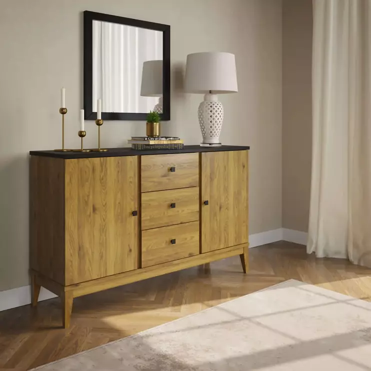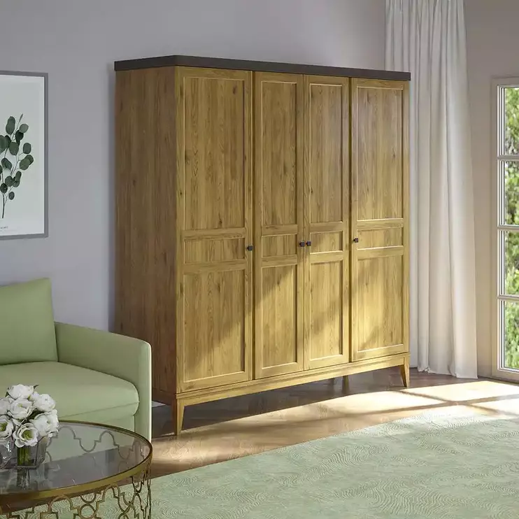 Ящики монтируются на шариковых направляющих полного выдвижения. Дверцы закрываются плавно, без хлопков, благодаря надежным доводчикам марки Hafele (Германия). На дверцах и ящиках металлические квадратные ручки-кнопки.У всех предметов высокие ножки, поэтому для мытья пола не придется сдвигать мебель. Можно использовать даже робот-пылесос.