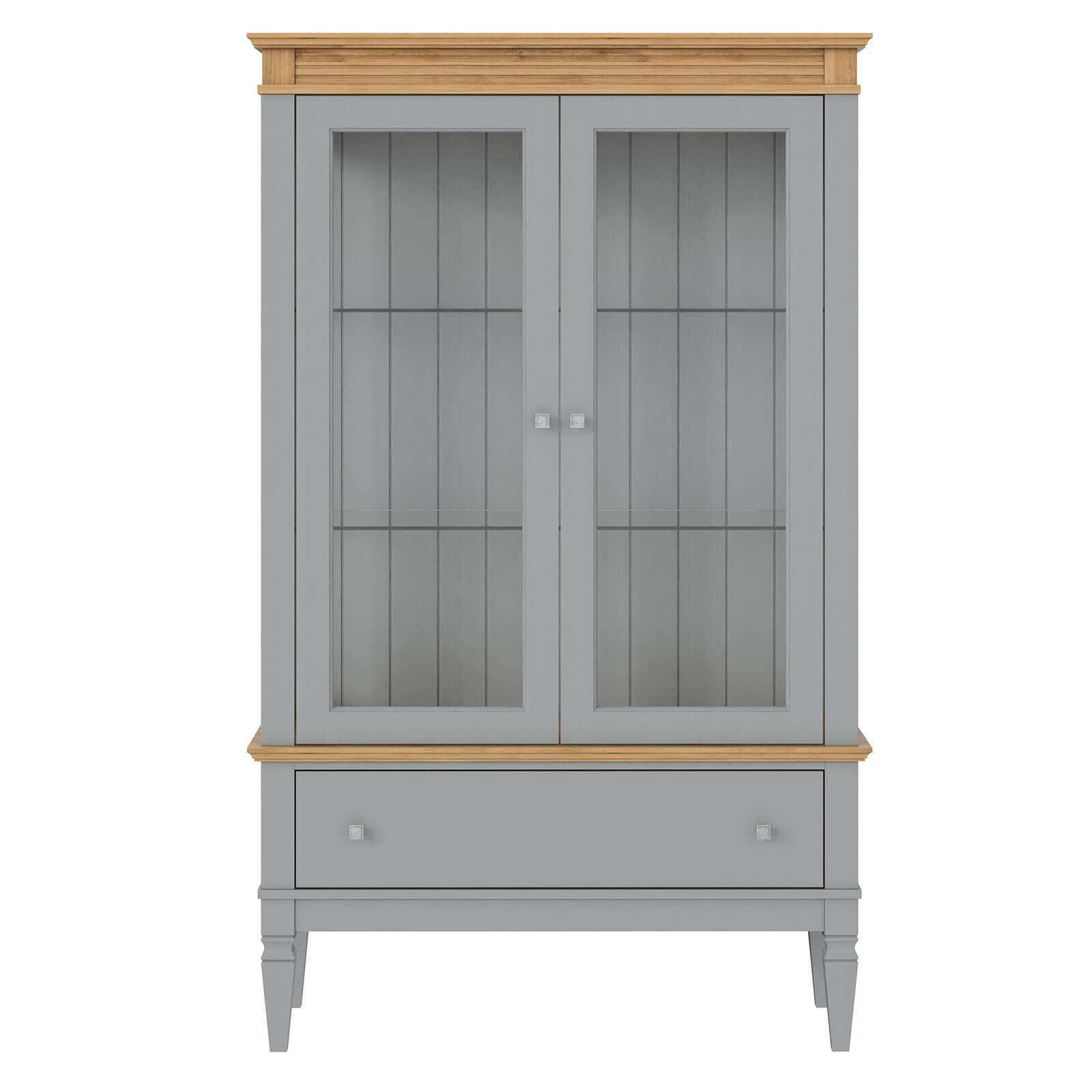 Боковины, полки и двери - стеклянные;