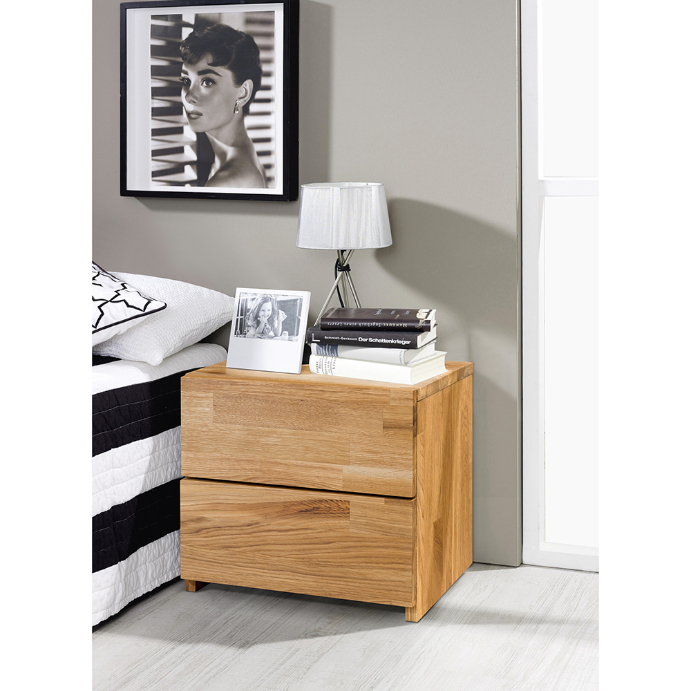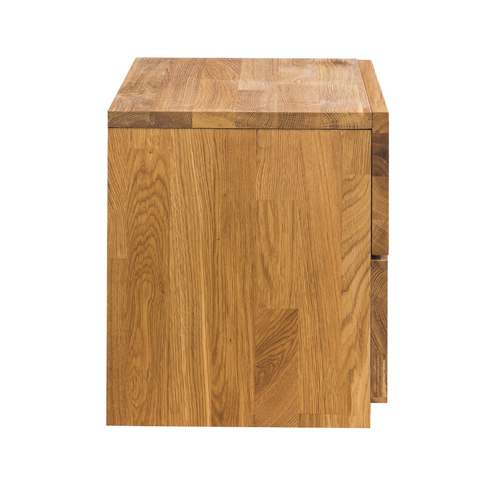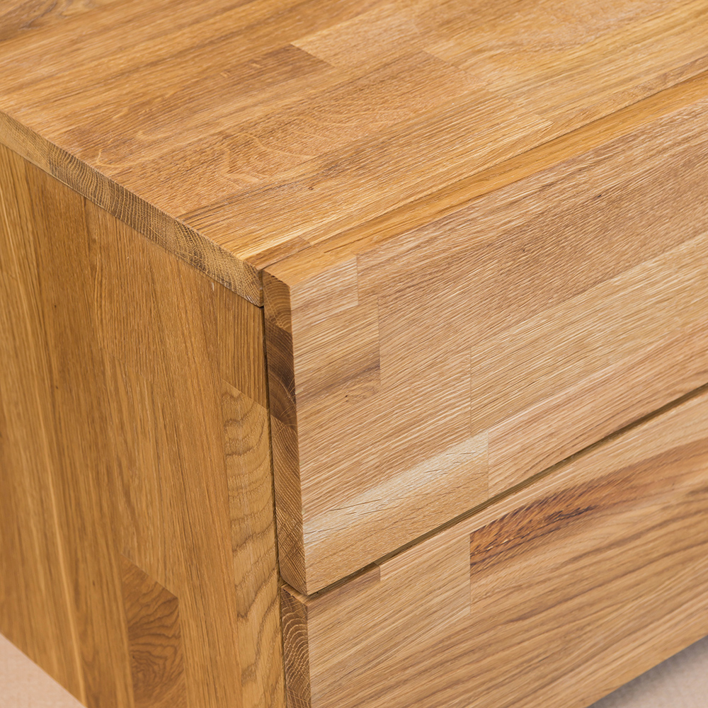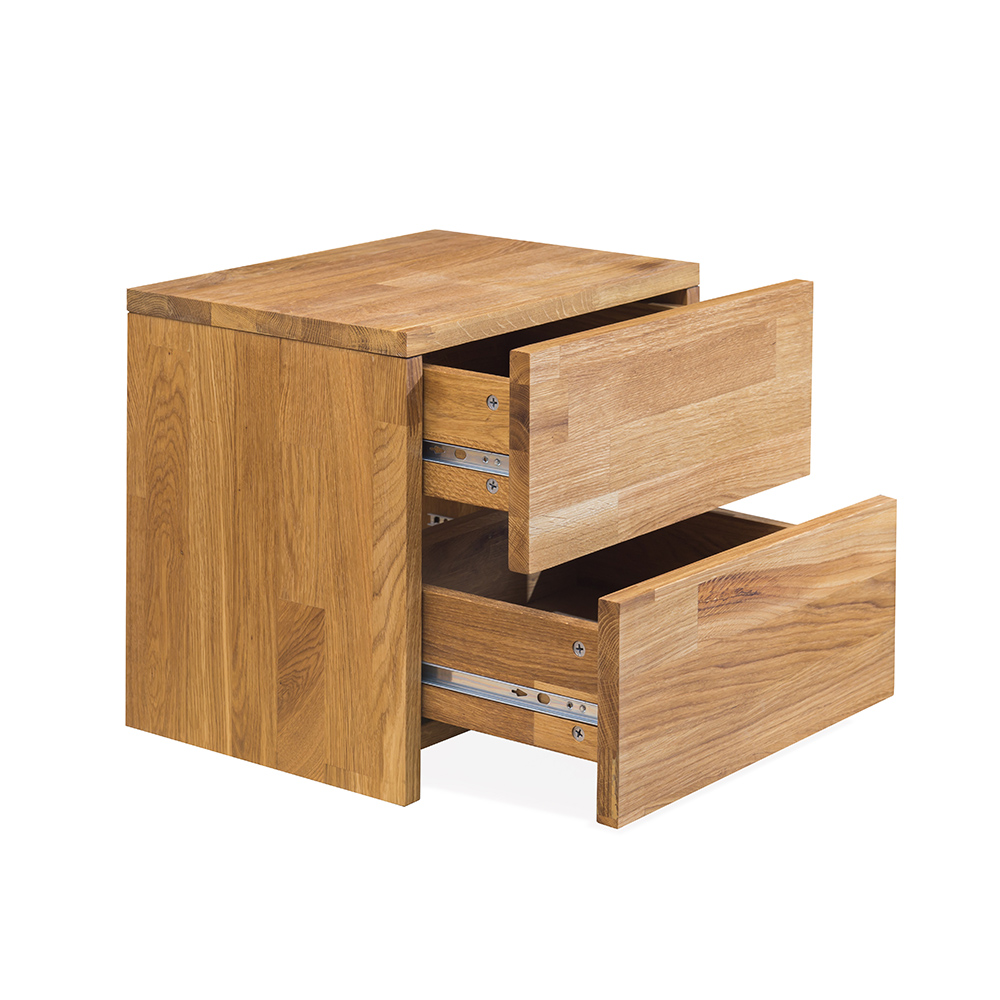 Прикроватная тумба «Ханс 2» с 2 ящиками изготовлена из из массива дуба – красивого и долговечного натурального материала. Задняя стенка и днища ящиков сделаны из фанеры в шпоне дуба. На столешницу тумбы удобно класть перед сном телефон. В ящики можно положить книги или разные мелочи. Предлагается 6 цветов отделки, на выбор: бейц-масло, отбеленный дуб, дуб венге, дуб паркетный, тёмная вишня, итальянский орех.